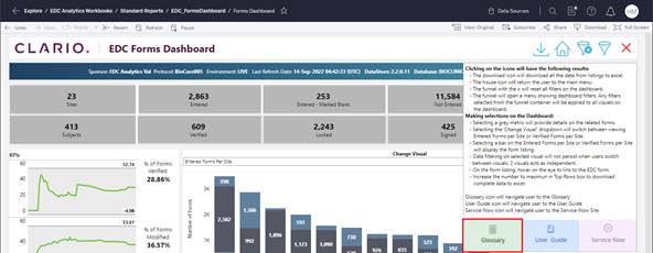 (Information) button. Click to select the Glossary button. The